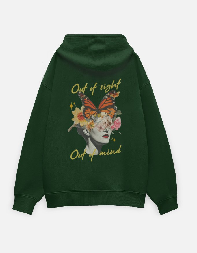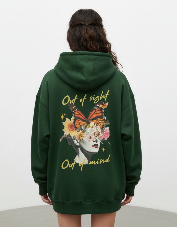 Flower Head Girl Out of Sight Out of Mind Bottle Green Oversized Hoodie