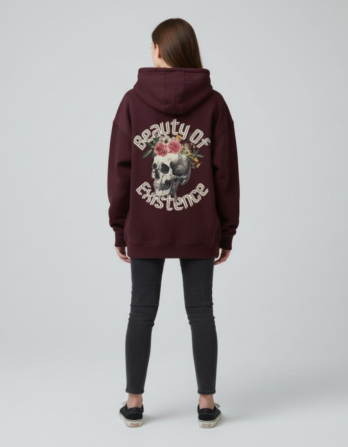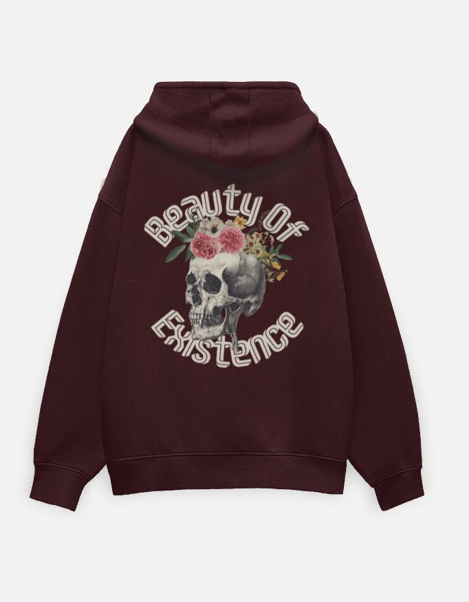 Skull head Beauty of Existence Maroon Oversized Hoodie